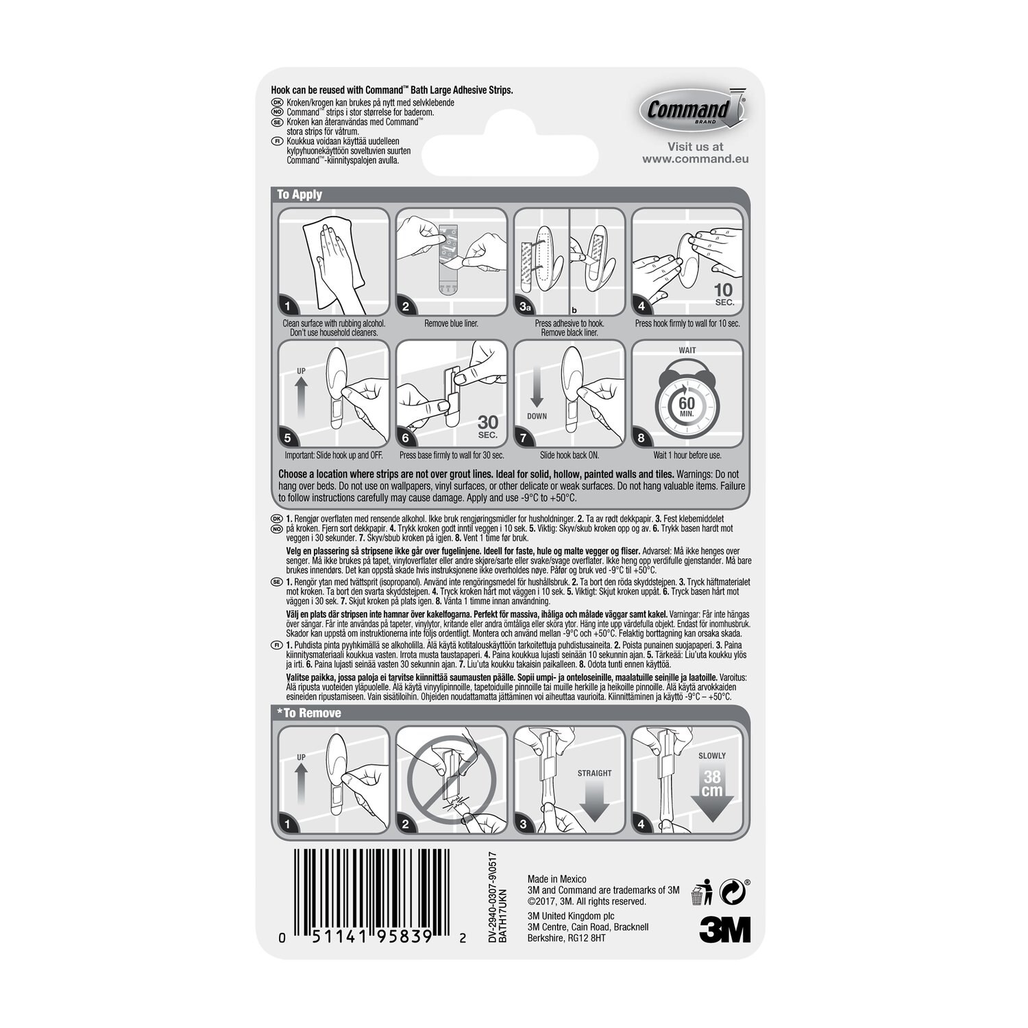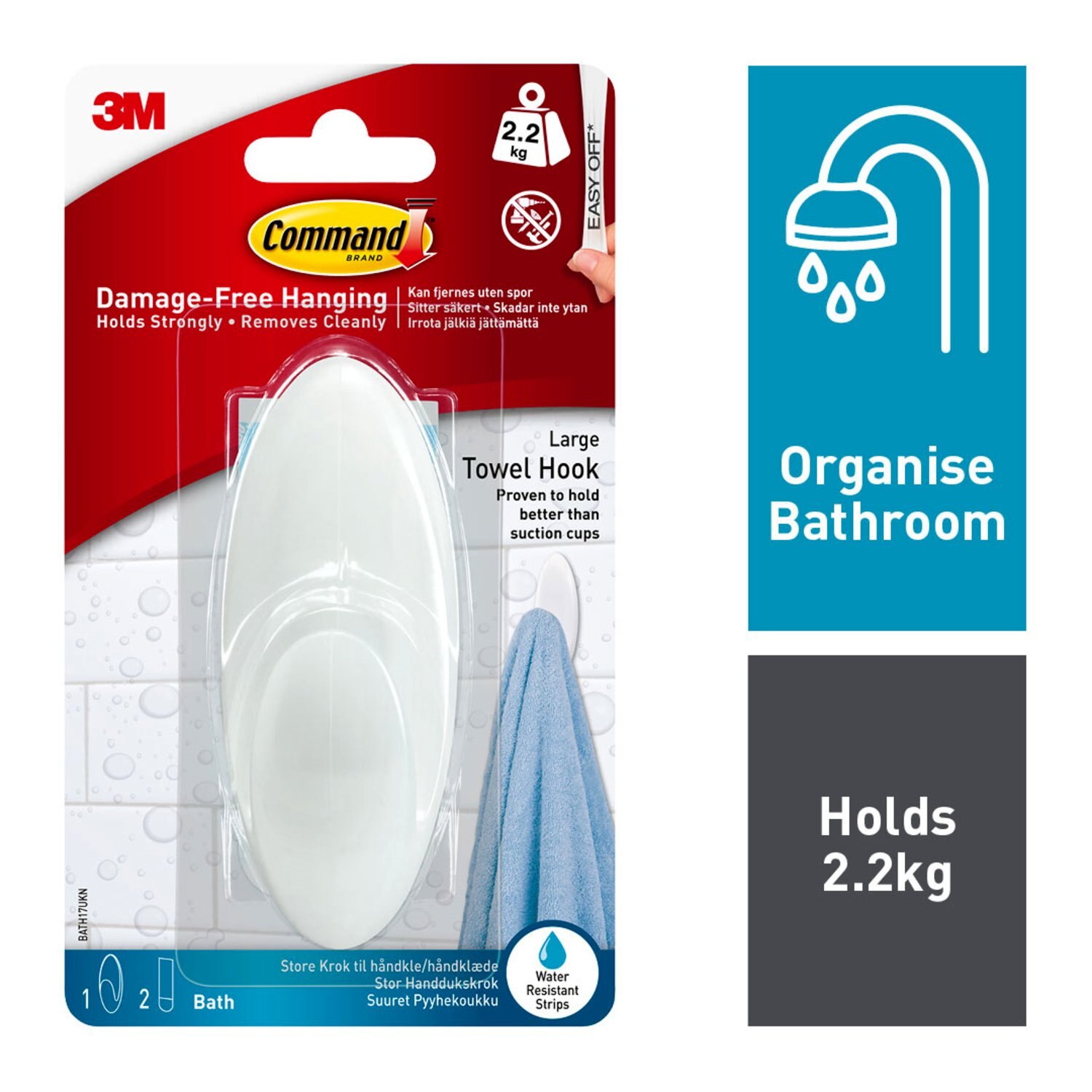Command™ Bath Large Towel Hook is our innovative solution for hanging heavy towels in your bathroom securely and damage free. It holds strongly and removes cleanly using 3M stretch-release technology.