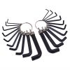 Set includes flat parallel, flat tapered, round, half round, square, three square, oval, crossing, barrette and knife. With plastic handles. Approx length: 140mm.