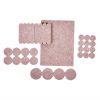 Selection of 5 different sizes. Suitable for all furniture & floors. Self-adhesive application. Thickness: 5mm felt plus 1mm EVA adhesive. 1pc rectangular (152 x 114mm). 8pc oblong (66 x 12mm). 12pc round (19mm). 4pc round (38mm). 8pc round (28mm).