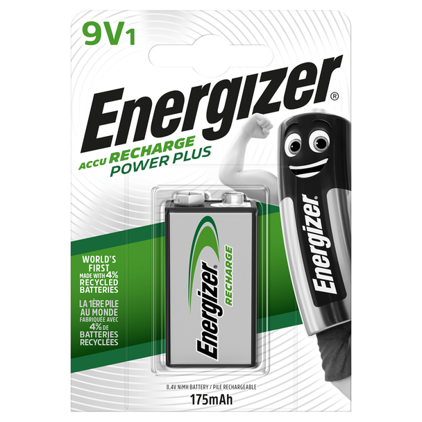The Energizer Power Plus 9V Rechargeable Battery‘s reliable chemistry power can operate at a wide spectrum of temperatures. Reliable and environmentally friendly, this high powered 9V Block rechargeable battery maintains its performance even if charged over and over again without damaging the cell itself. For best results, pair your Energizer Power Plus 9V with Energizer battery chargers.