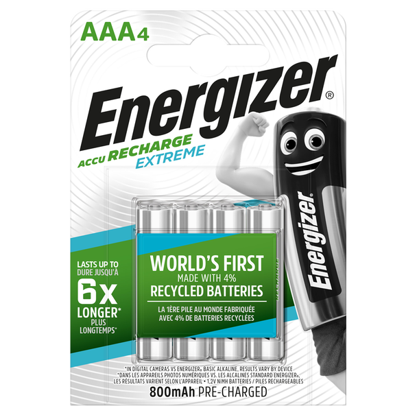 Energizer Rechargeable Extreme AAA Batteries 800mAh – Pack of 4