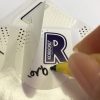 • Using the Laundry Marker carefully write name on the (non-adhesive side of iron-on) clothes labels. (For best application, do not allow too much pressure as this may cause the ink to bleed)